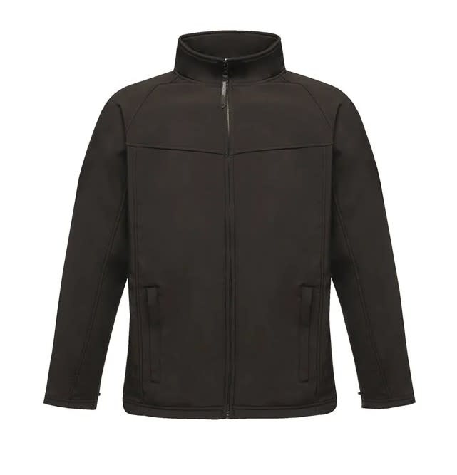 Warm backed woven stretch softshell fabric with durable water repellent finish.