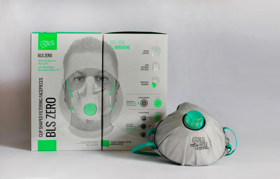 BLS Zer0 is a disposable FFP3-class respirator mask designed to provide high-level protection against fine airborne particles.